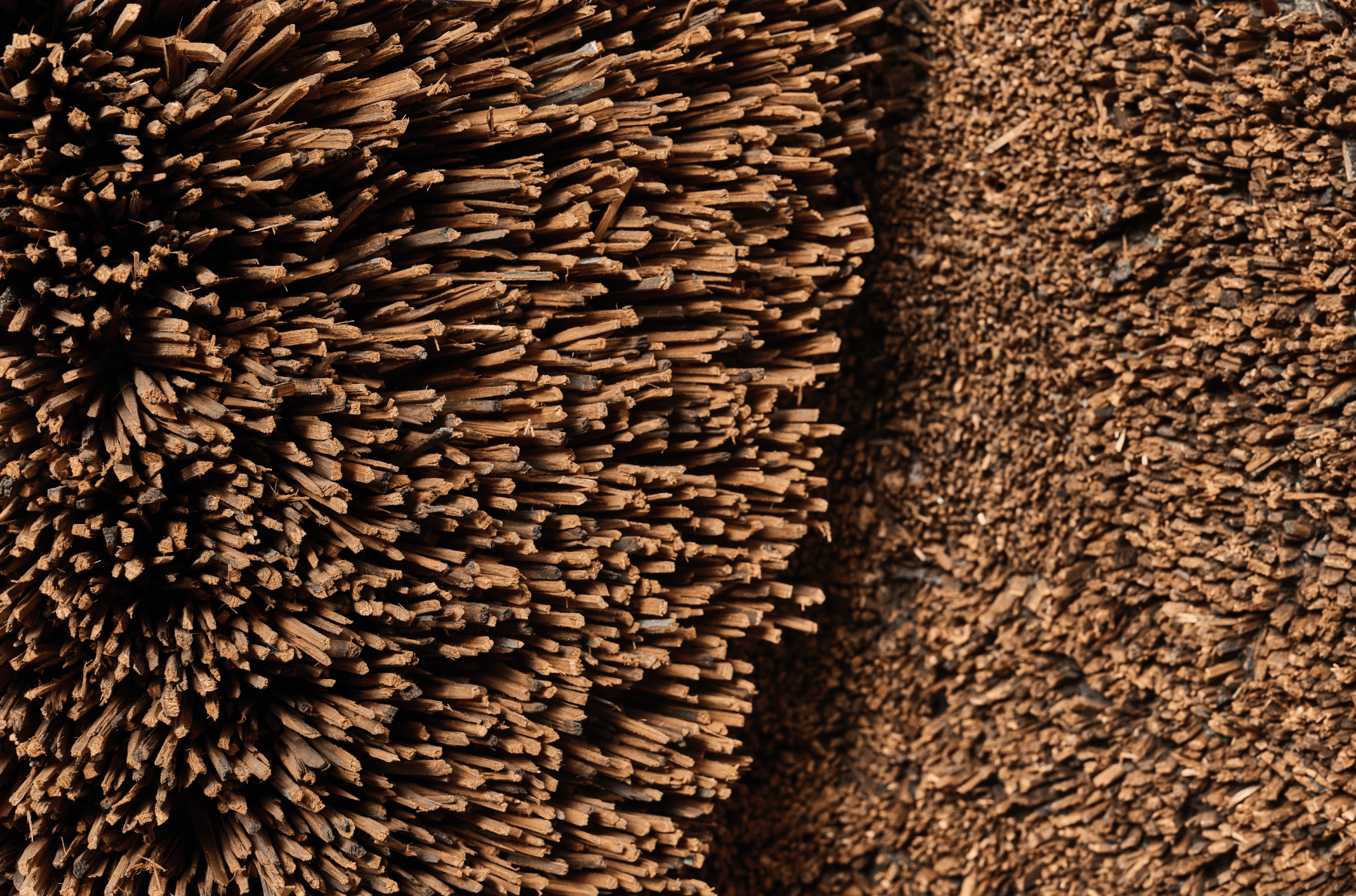 Drew is known for creating wall-based abstract sculptural works that play on a tension between order and chaos. The artist typically uses manipulated organic materials to create richly detailed works – seemingly bursting from the walls – which resemble densely populated cities or urban wastelands and evoke the mutability of the natural world. Materials include wood, cardboard, paint, paper, plastic, rope, string and tree trunks. The artist subjects these elements to processes of oxidation, burning and weathering. These labour-intense manipulations mimic natural processes and transform these objects into sculptures that address formal and social concerns as well as the cyclical nature of existence. Drew’s long-standing interest in lifecycles and how human labour leaves traces of life behind is an important aspect of the materiality of the work.
